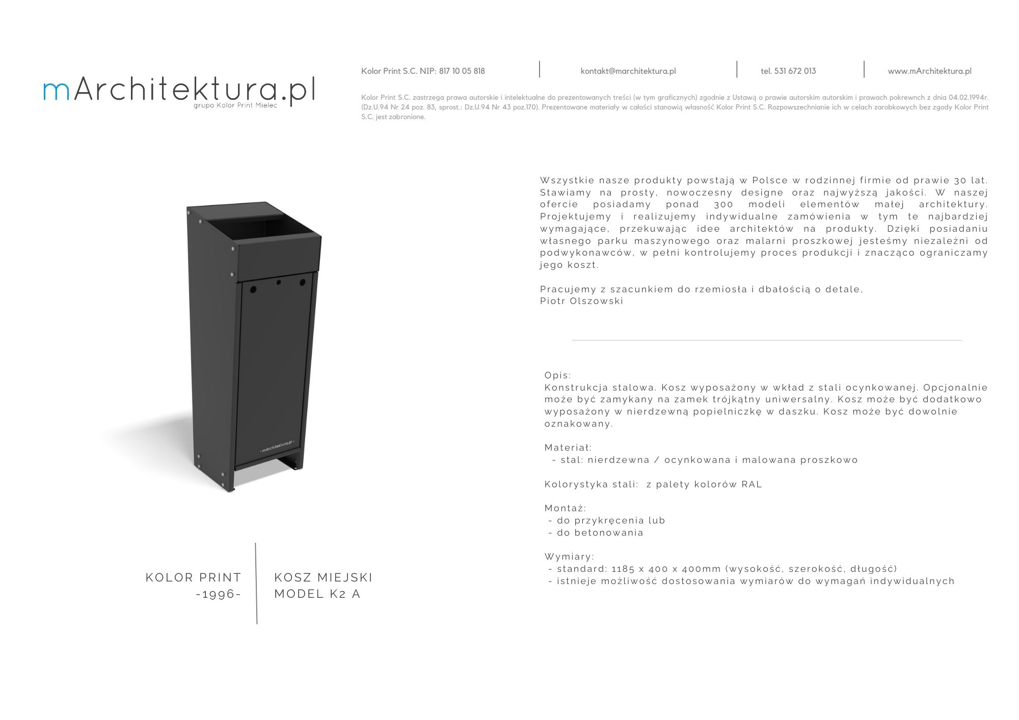 Wszystkie kosze na śmieci produkowane są w naszym zakładzie w Mielcu w rodzinnej firmie od prawie 30 lat. Stawiamy na prosty, nowoczesny designe oraz najwyższą jakość.