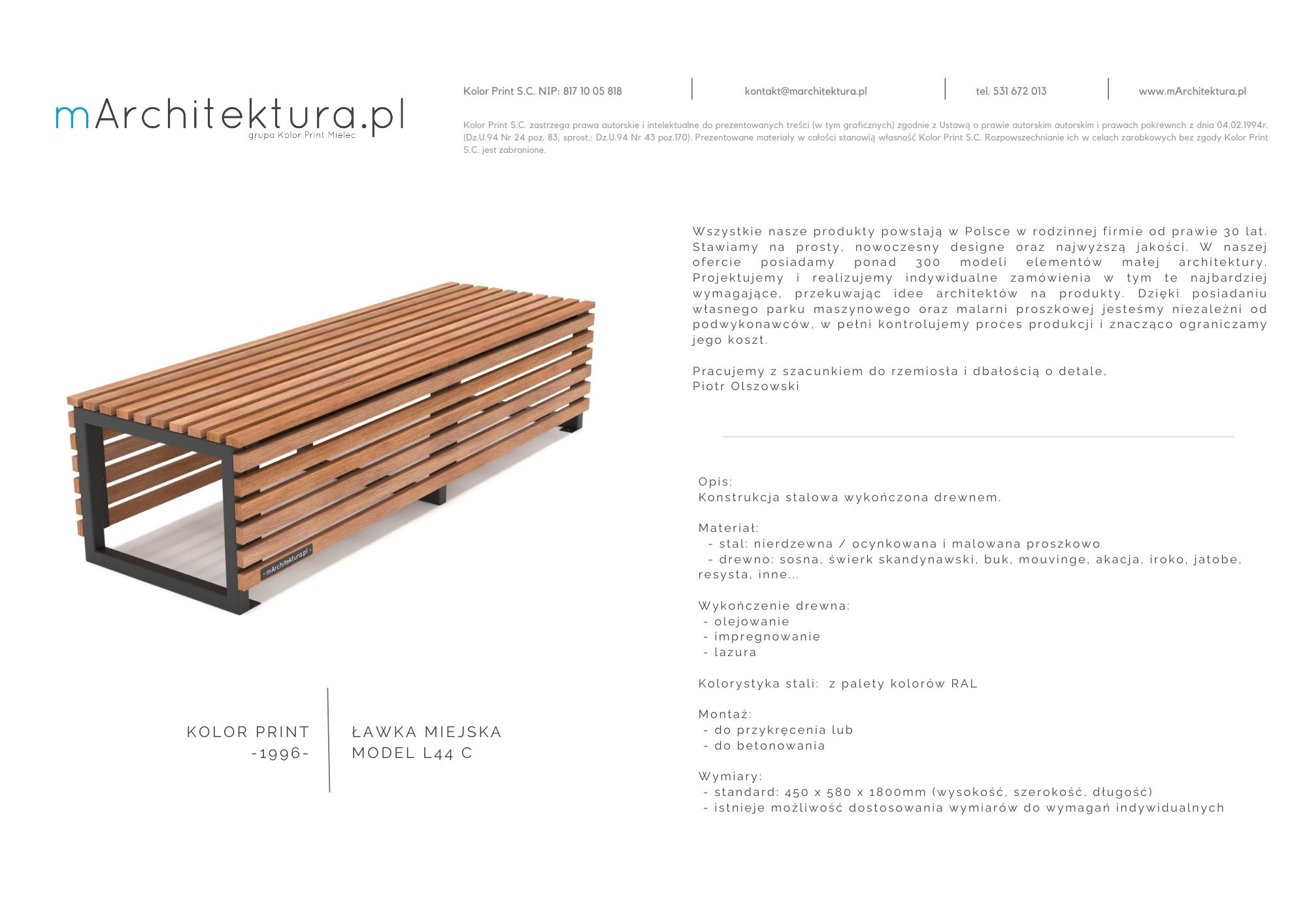 Ławki produkowane są z dbałością o detale i jakość wykończenia. Istnieje możliwość optymalizacji naszych produktów poprzez dostosowanie wymiarów, wyposażenia, kolorystyki, zastosowanych materiałów oraz sposobu montażu. Jeżeli potrzebujesz więcej informacji zapraszamy do kontaktu.