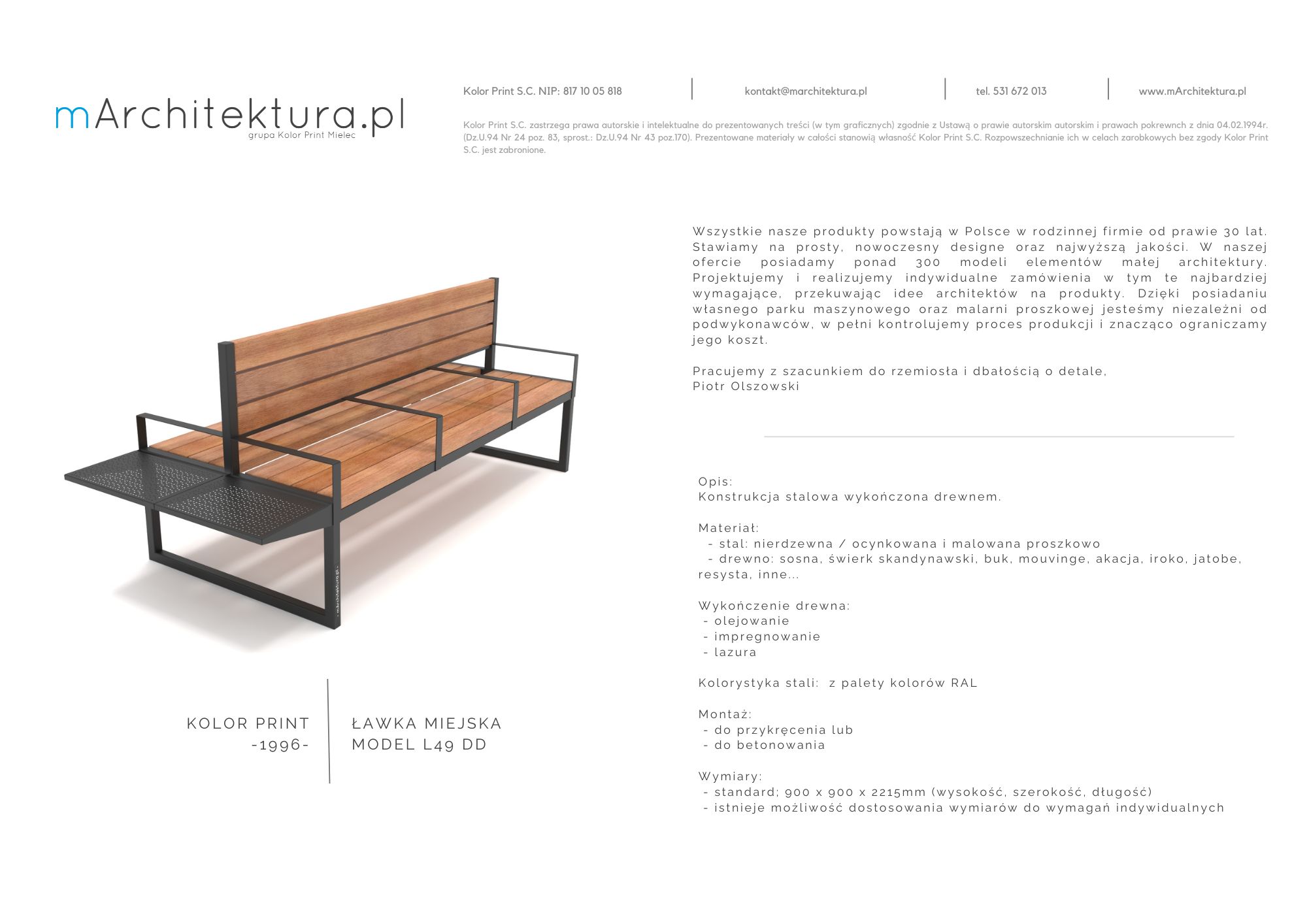 Wszystkie prezentowane na naszej stronie ławki produkowane są przez nas w naszym zakładzie w Mielcu. W rodzinnej firmie od prawie 30 lat. Stawiamy na prosty, nowoczesny designe oraz najwyższą jakość.