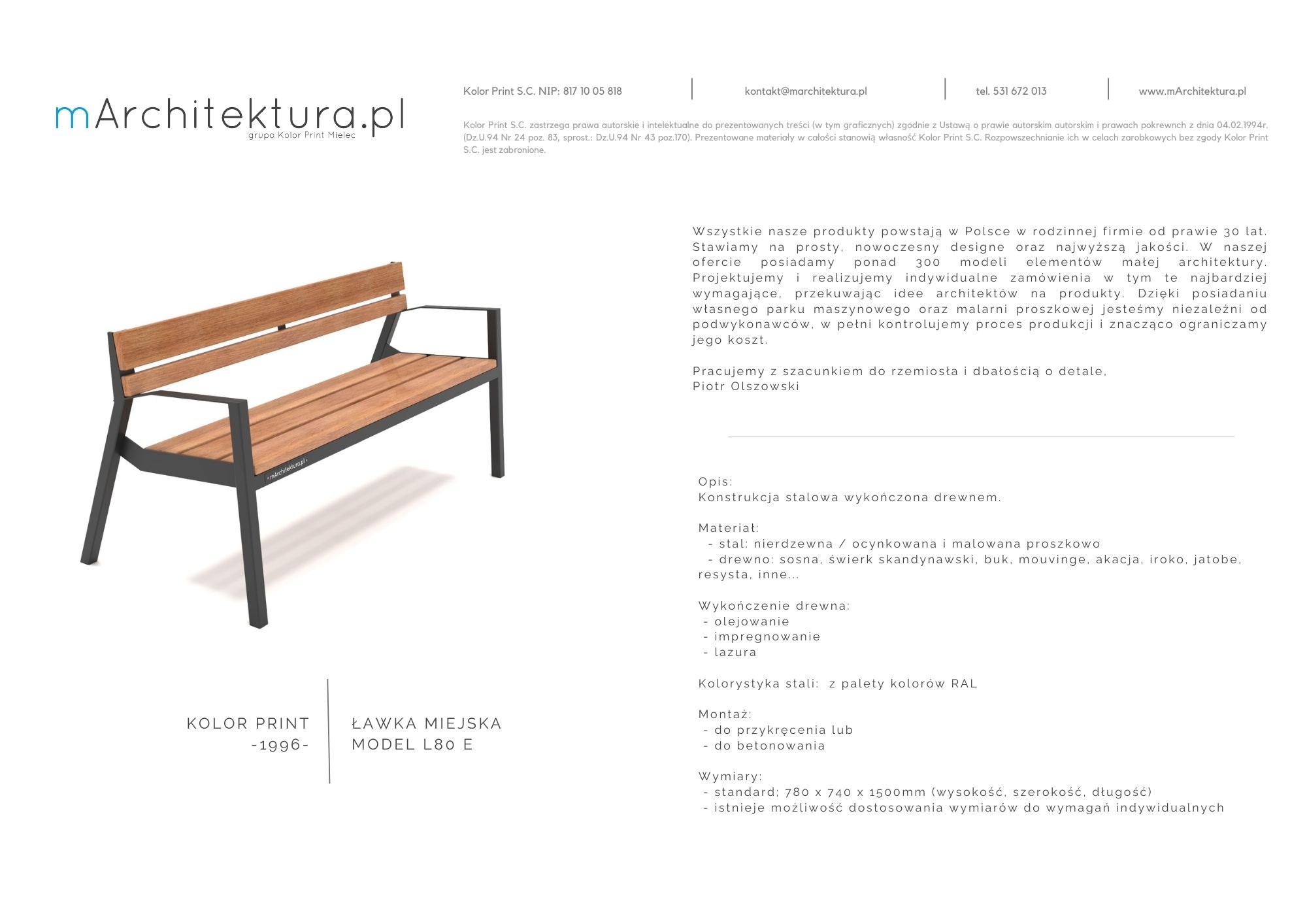Wszystkie prezentowane na naszej stronie ławki produkowane są przez nas w naszym zakładzie w Mielcu. W rodzinnej firmie od prawie 30 lat. Stawiamy na prosty, nowoczesny designe oraz najwyższą jakość.